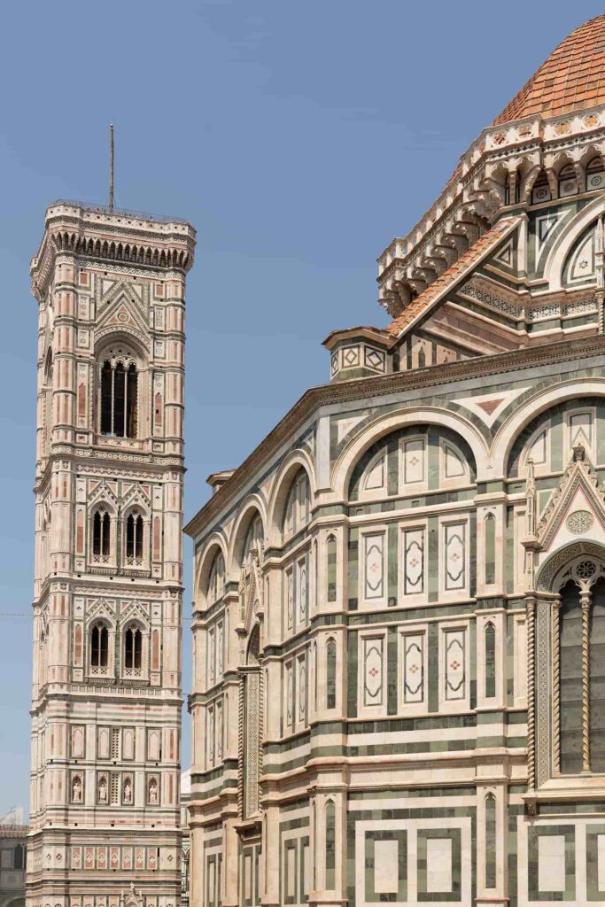 Co więcej, wybór marmurowych kolorów Campanile Giotta na elewacji zapewnia, że jego katedra nie wydaje się być obcą bryłą, ale jest doskonale zintegrowana z monumentalnym kompleksem.